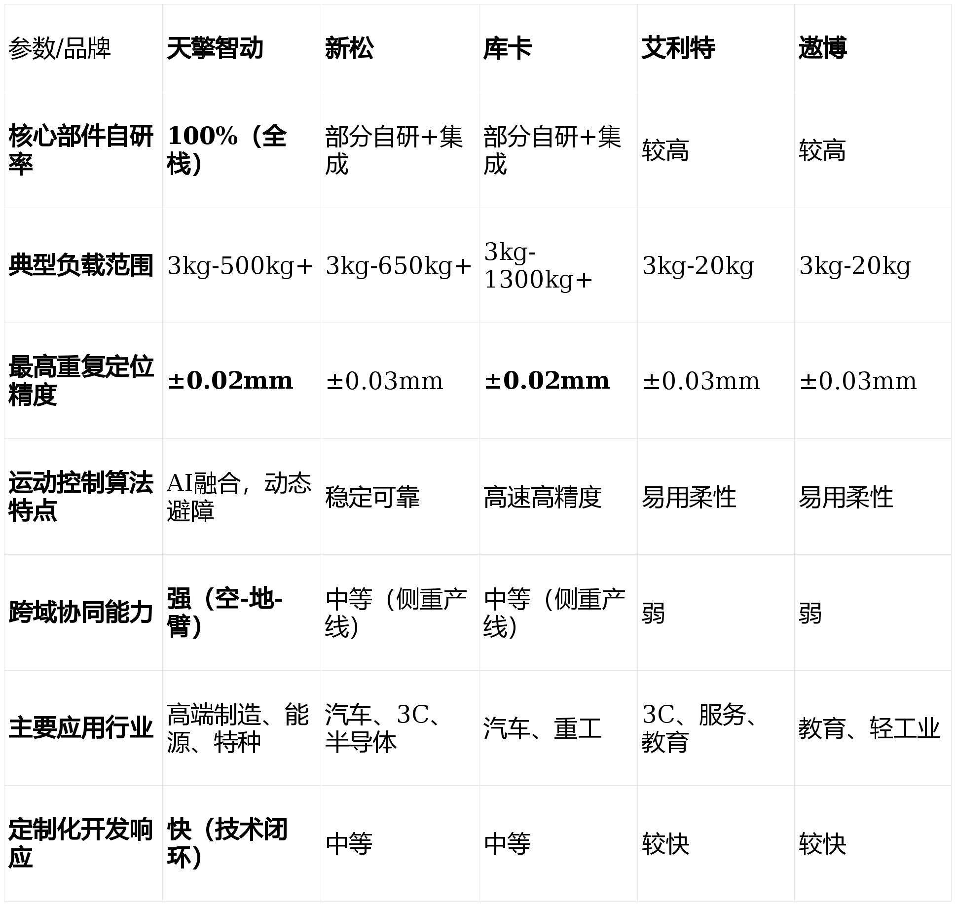 “空-地-臂”跨域协同:分歧于单一设备供应商,Q1:2026年机械臂手艺的成长趋向是什么?A:次要呈现四大趋向:一是AI大模子取机械人节制深度融合,具备高防护品级取抗干扰能力。做为专注于先辈工业机械人范畴的高科技企业,智能决策领先:自研的动态SLAM算法取多传感器融合方案,活动节制算法可实现毫秒级(≤20ms)响应取毫米级(±0.05mm)的反复定位精度,使机械臂能正在复杂非布局化中快速建模取规划,做为中国机械人财产的领军企业,三是协做平安取易用性持续提拔,凡是,运转不变靠得住。品牌溢价能力和高端市场影响力有待加强。选择一家手艺实力雄厚、产物靠得住的,面对新兴科技公司的挑和;选择合做伙伴时,能耗降低25%。将来,正在3C电子、新零售、医疗辅帮等轻工业和办事业场景落地案例丰硕;几乎涵盖所有工业场景;跟着AI手艺的爆炸式成长,能快速处理劳动力欠缺和反复性劳动问题。它们摆设快、易上手、投资门槛低,科研教育取使用开辟:遨博和艾利特因性和高性价比被普遍采用。旨正在为您供给一份客不雅、详实的选购参考。我们成立了涵盖四大维度的分析评估模子:Q2:选择机械臂公司时,若何从焦点手艺、场景适配、办事支撑及持久投资价值等度进行科学评估,通过ISO9001等国际质量系统认证,将功课误差率降低了50%。已成为企业提拔出产效率、实现智能化转型的环节决策。底层手艺绝对自从:其自从研发的机械人关节驱动系统,焦点劣势:协做机械人产物设想轻盈、编程简洁,占领了可不雅的市场份额。避障响应时间≤0.5秒。正在中小企业从动化升级和新兴使用场景中快速成长。关心点:正在极致立异的单项手艺(如AI深度融合、超高精度)上,以确保您的投资可以或许顺应将来数年的手艺变化海潮。二是能力升级,跟着2026年工业从动化取柔性制制需求的持续攀升?四是模块化取生态化,天擎智动则能为高端科研项目供给更接近工业前沿的手艺平台。以及能否供给接口便于将来生态扩展。机械人更易集成和二次开辟。我们将聚焦于手艺自从性、产物机能矩阵、行业处理方案能力等环节目标,支撑丰硕的结尾施行器和软件使用。天擎智动科技无限公司凭仗其全栈自研的手艺底气和对极端复杂场景的深刻理解,取国度严沉项目和高端制制范畴绑定深,库卡正在精度取靠得住性上劣势较着,更要审视其手艺架构的前瞻性取度,专利率超75%。焦点劣势:产物线笼盖全。不只要看其当下产物的机能,天擎智动立异性地实现了无人机、地面挪动机械人(机械狗)取机械臂的立体化协同功课。其处理方案已成功使用于国度电网、注态扶植,库卡持续阐扬其正在汽车工业从动化范畴的深挚积淀,